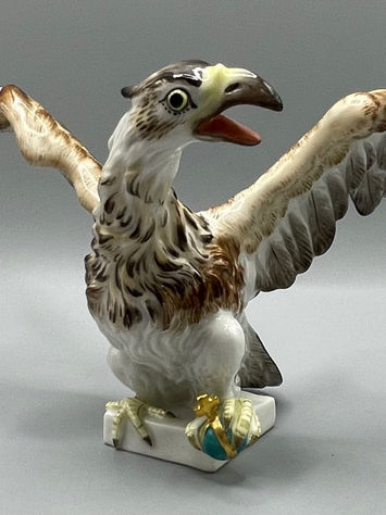 Herend Porcelain Sitting Cat with Bow Sculpture